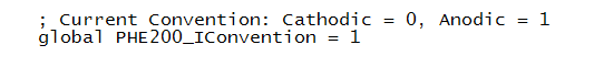 Based on the first line’s instruction, simply change value of the “global PHE200_IConvention” object on the second line to select which type of current gets the positive sign during acquisition.